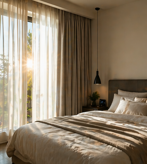 Wake gently as curtains open, lights brighten softly, and your home comes alive.
